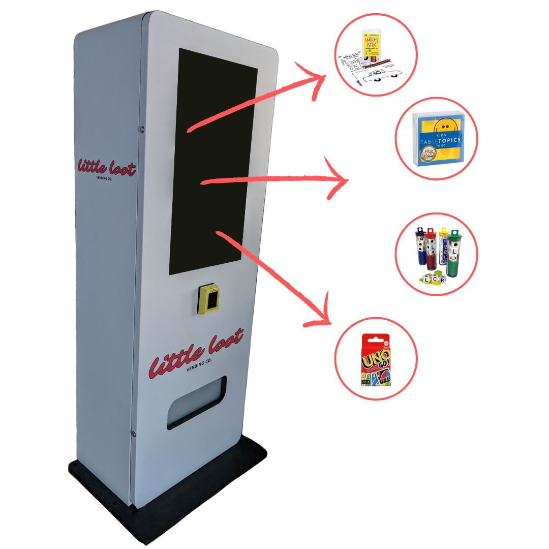 Welcome to Little Loot—where fun meets the table! Inside our vending machines, you'll find a delightful mix of toys, tabletop games, and conversation starters designed to enrich your gatherings. We're all about transforming dining out into an adventure of laughter, bonding, and memorable moments.Let's make every meal a playful escapade. Explore, play, and connect—because together, we make every occasion special.We hope you love playing with them as much as our family does!